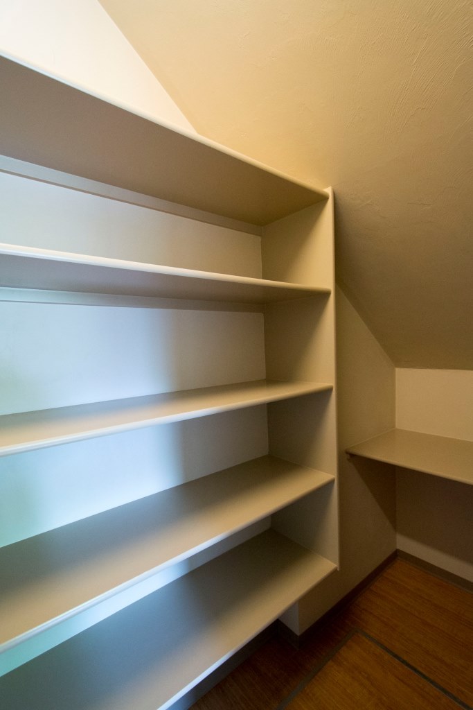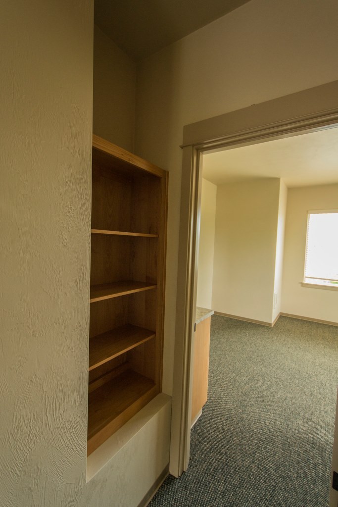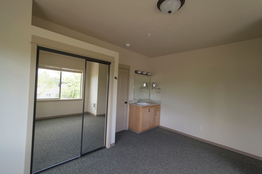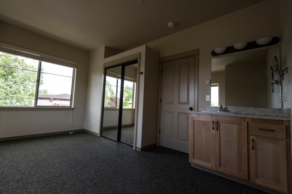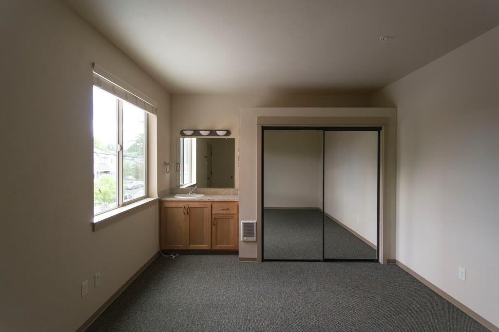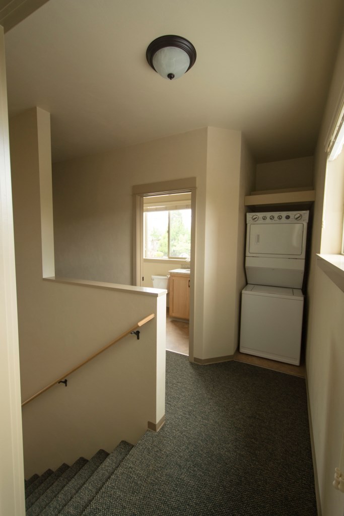 Kitchen, living and dining rooms are on the first level. Both bedrooms and full bathroom are on the second level. Stackable W/D, N & W facing window views! Open pantry with shelving in the kitchen. Both bedrooms have their own private sink & vanity with makeup mirrors.