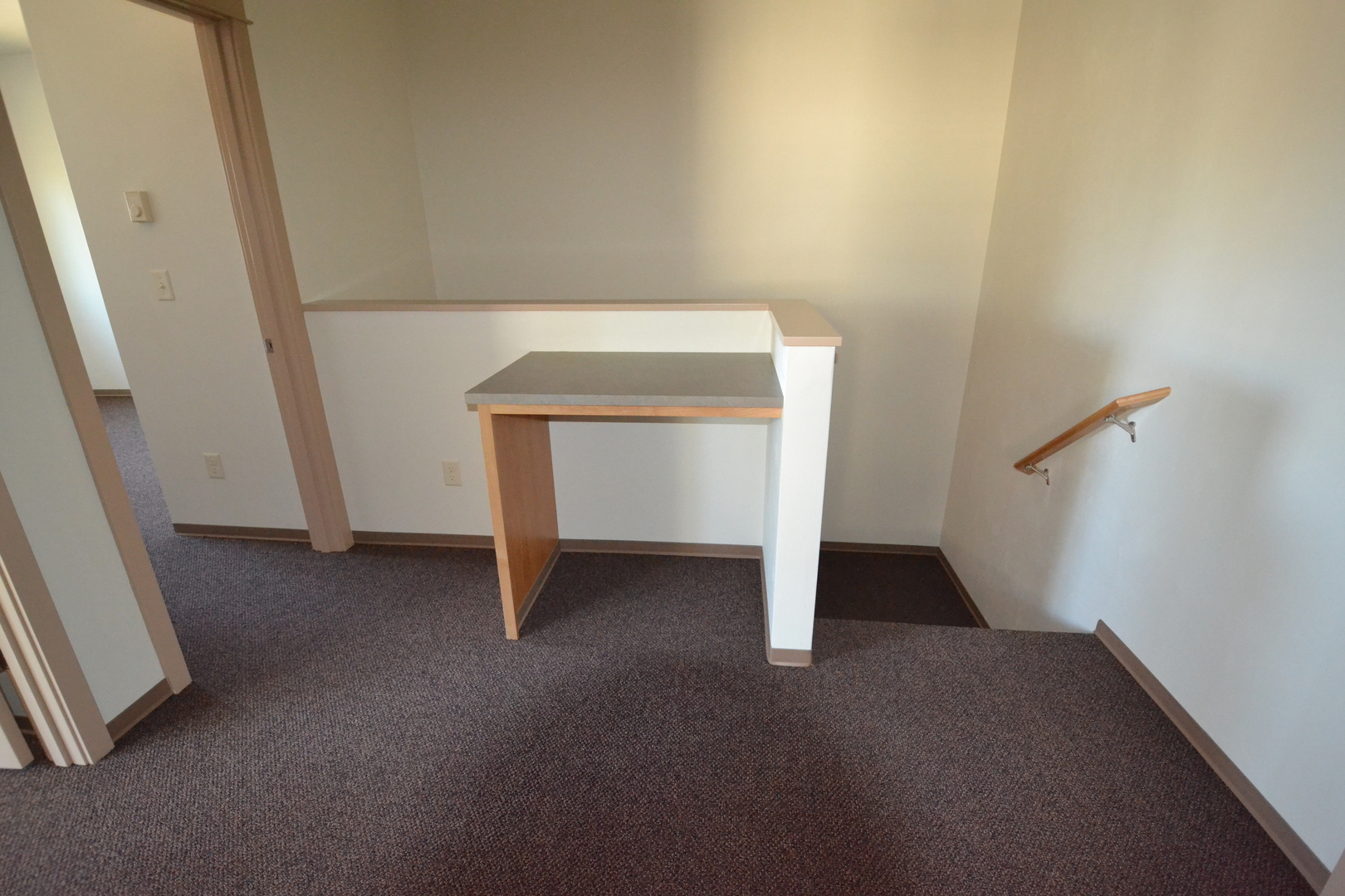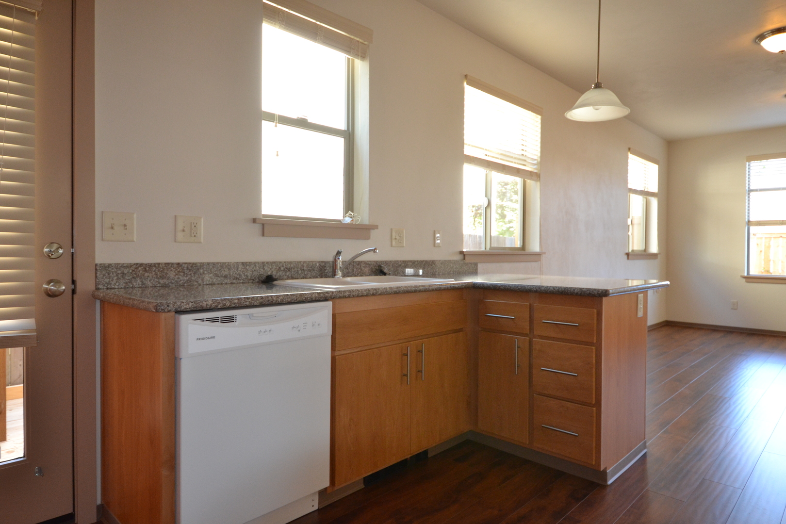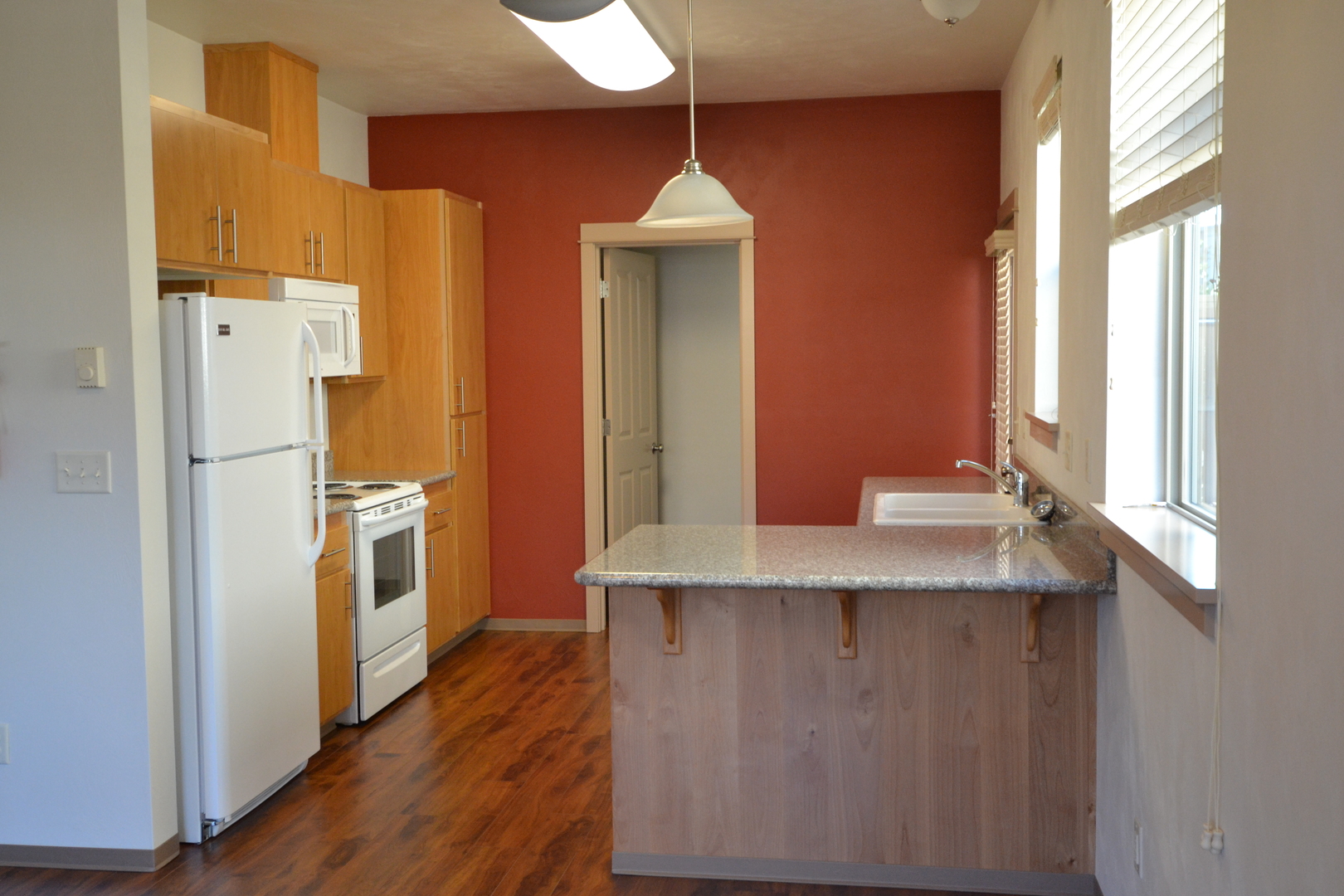 2 bedroom 1.5 bath townhouse has open living room, granite kitchen counters w/ bar-stool counter, pantry, half bath, and deck. Bedrooms on the 2nd floor, with stackable W/D, folding table and full bathroom.