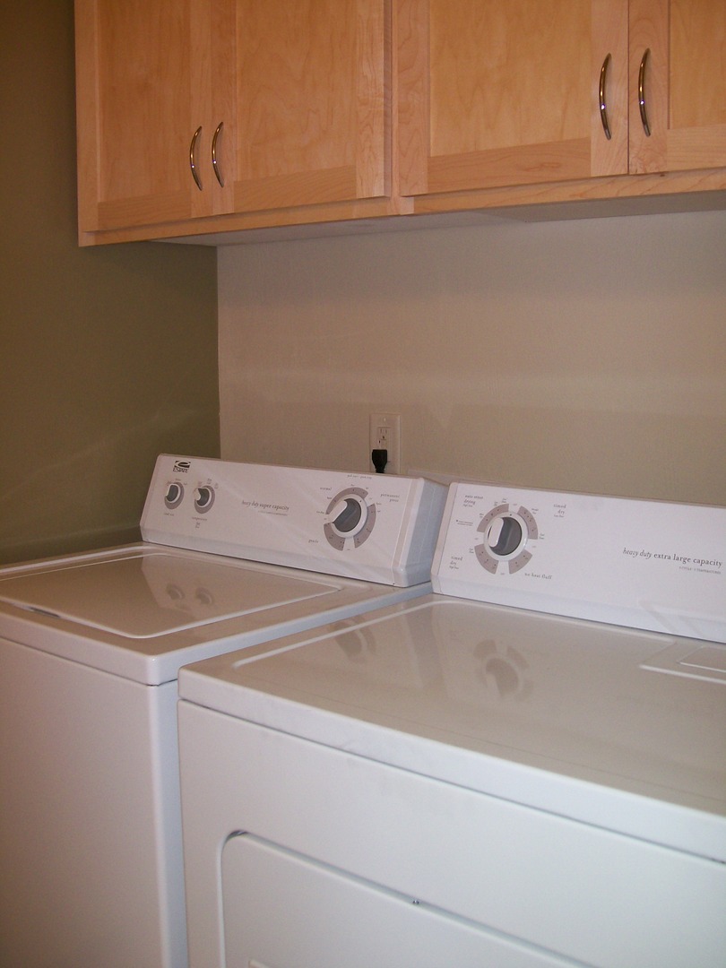 The kitchen boasts black appliances with pantry! Large living space makes entertaining easy. Full sized washer and dryer make doing laundry convenient. Main floor powder room for guest use. Each of the two bedrooms features a built-in desk with task lighting. Full bath has tub/shower.