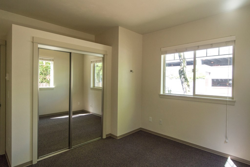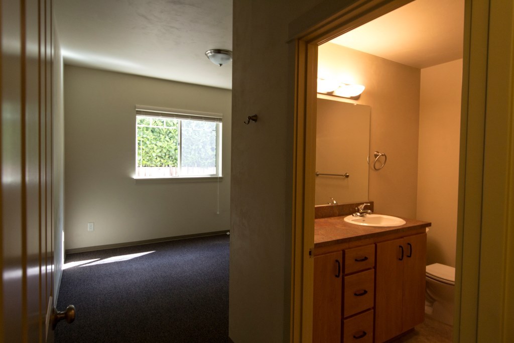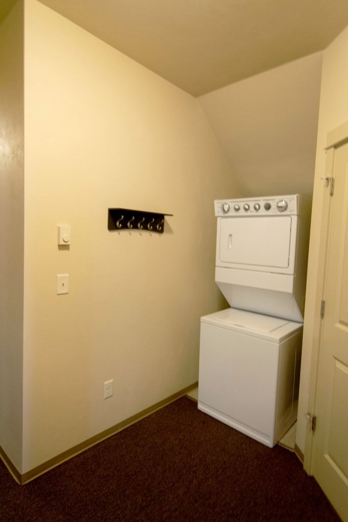 Features over 1100sq.ft. downstairs flat. Compact one-car garage w/ access directly inside. Unit comes w/ stackable W/D. Bedroom 2 features a vanity. Bed 3 has full-size bathroom connected. Space above closets for storage. Bedrooms and hallways are carpeted.